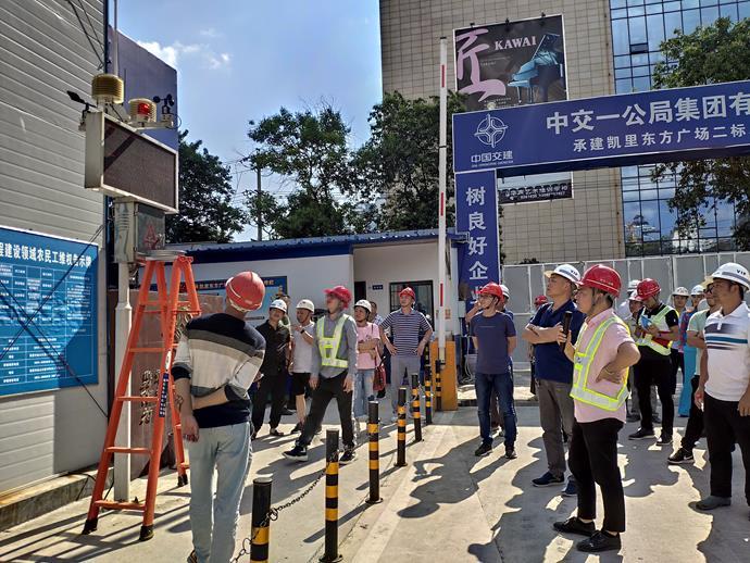 观摩组首先听取了项目经理许二猛关于项目概况、工程进展等方面的情况。随后一行人深入施工现场,重点参观了现场安全文明文明施工、标准化建设等方面内容,并观看了扬尘自动喷淋系统演示。会上,双方就门禁系统、扬尘喷淋系统等一点预警、全网联动机制方面分享了管理经验。