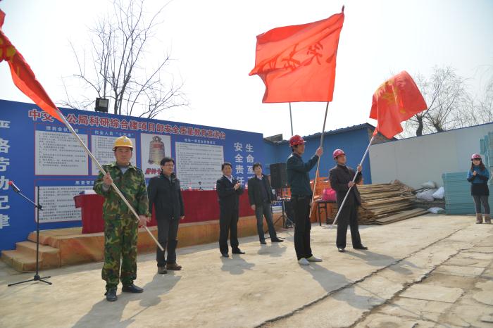 2013年4月3日科研楼举行“大干一个月,确保主楼结构顺利封顶”劳动竞赛动员誓师大会