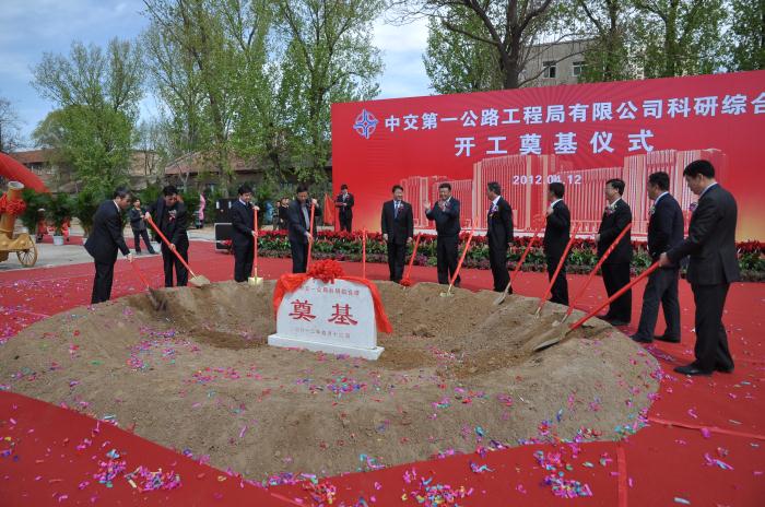 从2012年4月1日,中交一公局下文正式成立局北京建筑分公司,到科研综合楼奠基只有12天;4月20日成立以闫广东为组长的建筑分公司筹备组;5月9日,科研楼正式破土动工,为迎接明年建局50周年,局科研综合楼项目施工工期由定额830天被压缩至540天,在2013年的10月31日前必须保证达到局机关入驻和正常使用。