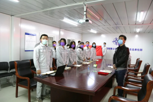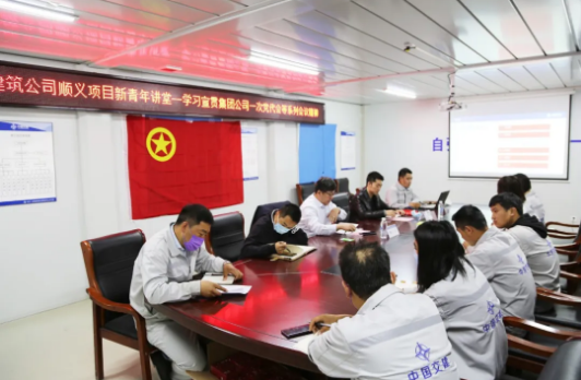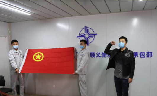 顺义项目团支部书记朱世鹏带领全体青年员工唱团歌,嘹亮的歌声提醒着青年们勿忘肩负的责任与使命。
