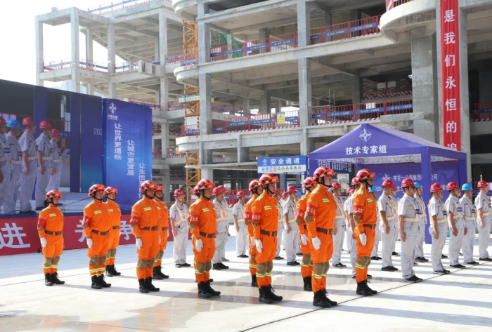 本次活动包括模板支架坍塌事故应急救援演练、有限空间中毒窒息事故应急救援演练两部分,由重庆世通大厦项目员工、重庆隧道救援队50余人联合出演。