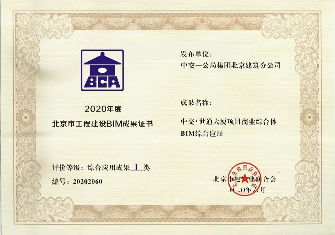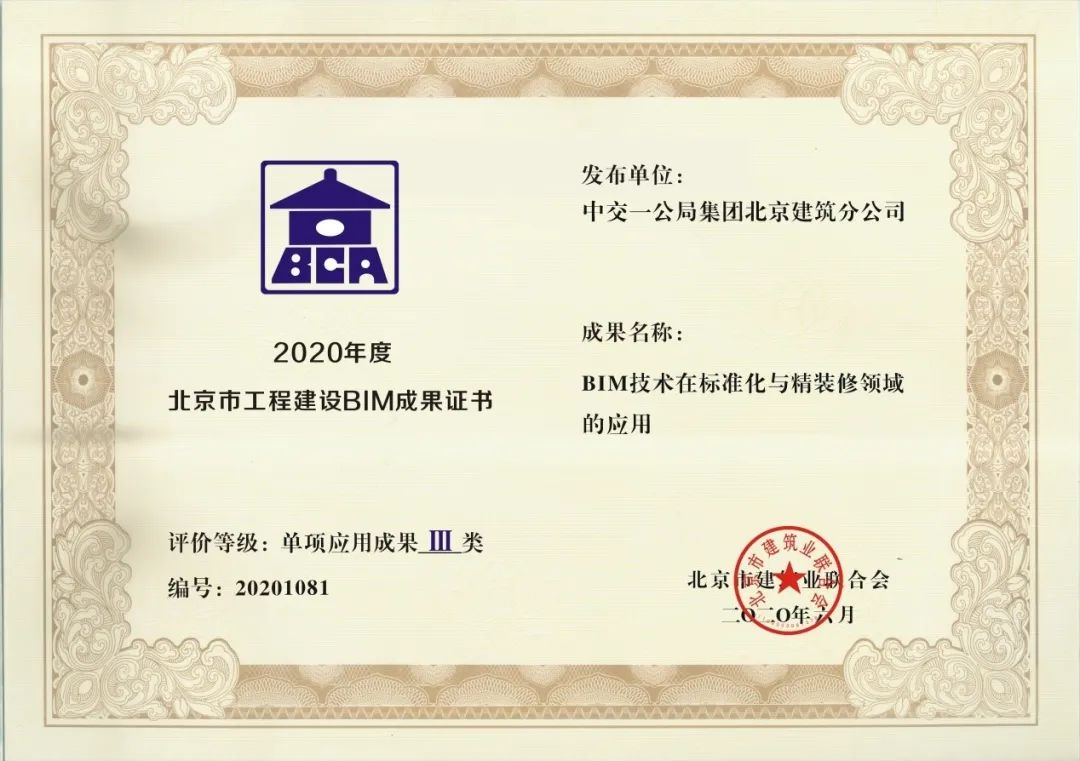 近日,北京市建筑业联合会组织开展的2020年度北京市工程建设BIM应用比赛评选结果揭晓,公司申报的《中交·世通大厦项目商业综合体BIM综合应用》《BIM技术在标准化与精装修领域的应用》两项成果分别获得综合组一等奖、单项组三等奖,填补了公司BIM省部级一等奖的空白。