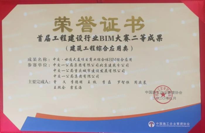 近日,中国施工企业管理协会组织开展的首届工程建设行业BIM大赛结果揭晓,建筑公司申报的《中交·世通大厦项目商业综合体BIM综合应用》荣获综合应用类二等奖,也是中交一公局集团在房建BIM应用领域的新突破。