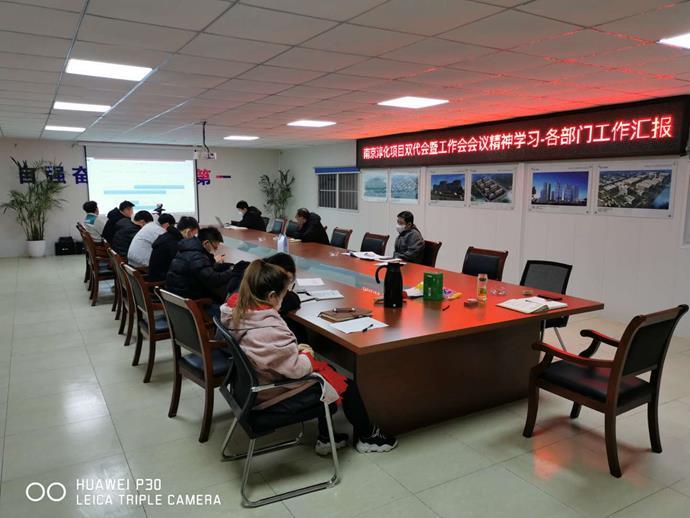 2020年2月16日,南京项目严格落实公司总部双代会暨工作会议要求,项目经理王卫平认真传达公司党委书记赵刚、总经理杨永洪讲话精神。按照工作任务安排,要求每人认真学习赵刚书记、杨永洪总经理的讲话内容,各部门将涉及本部门的学习材料归纳、总结,并结合2020年工作计划安排在本次会议上做汇报。