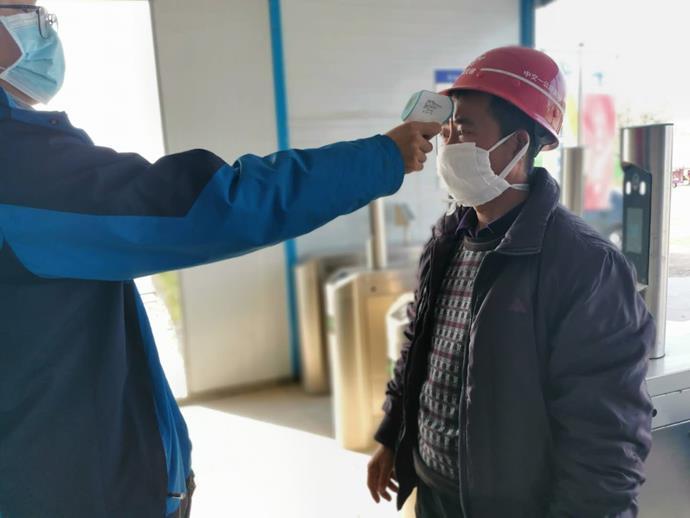 1、将现场全封闭,强化现场实名制系统管理,设立体温测量点,对进入现场人员严格实行体温测量,对出现体温超过37度,腋下体温超过37.3度的人员进行劝返,在宿舍区或居家进行隔离。