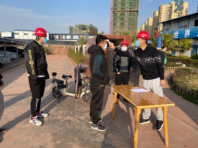 随着疫情防控工作进入关键阶段,西昌项目召开疫情防控工作专题会,成立专门的疫情防治领导小组,全面部署项目疫情防控工作;组织员工利用微信群学习疫情防控知识,使员工充分认识防疫抗疫的重要性;在日常的防控方面,对项目已到岗人员每天进行两次体温检测,安排专人每天定时做好施工现场、生活区、宿舍区的环境保洁及消毒防疫工作;对于已到场的工人,重新安排住宿,做到一人一间宿舍,生活区大门处设立防疫站,工人入住前首先在生活区防疫站测体温、消毒、登记,如实填写《实名登记表》、《承诺书》并发放《新冠肺炎防控宣传手册》,相关手续办理好后为工人制作实名制员工证,保证一人一证,规范管理。