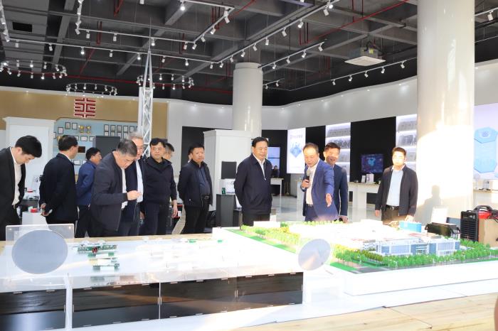 贾兴民一行首先来到了厂房的展示区,对产房生产的芯片产品进行了全面的了解。随后来到了厂房的生产车间进行参观,并对富泰新材料厂房的施工进度和质量表示肯定。