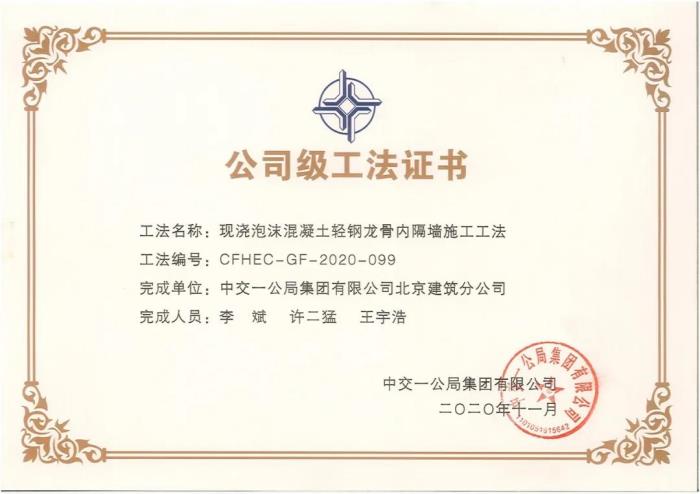凯里项目创新应用了现浇泡沫混凝土轻钢龙骨隔墙,提高二次结构施工效率,获评局级工法。
