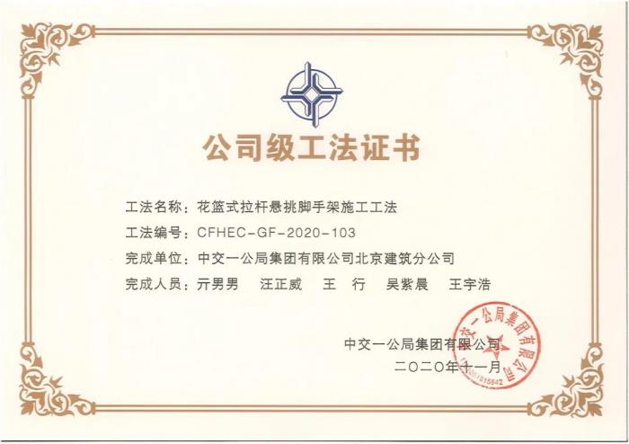南京项目针对花篮式悬挑脚手架安装不稳固的问题开展研究形成了《花篮式拉杆悬挑脚手架施工工法》,获评局级工法。