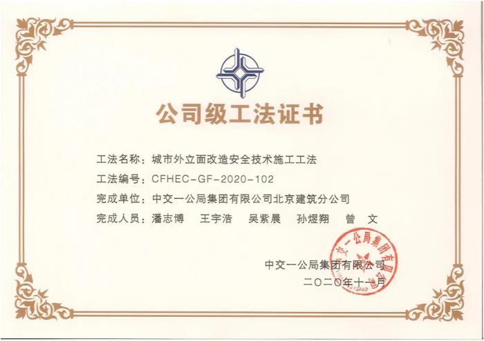 新疆项目通过该项科技成果创新研究形成了多项技术措施,解决了老旧小区改造人员密集地区安全问题,荣获一公局集团科技进步奖二等奖和局级工法。