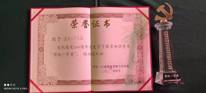 喜报!公司勇夺一公局集团建党100周年党史知识竞赛“团体一等奖”