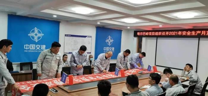 哈尔巴岭项目安全部于6月1日举办安全生产月启动会。项目负责人对项目成员提出:“安全无小事,安全生产是项目生产的关键环节,项目全体成员要牢记自身安全岗位职责,将安全隐患消除于萌芽,切实保障项目平稳、顺利推进”。最后项目全体成员在安全月宣传条幅上签字。(郭晨伊)
