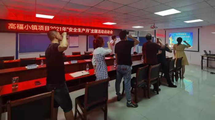 6月1日,高福小镇项目举行2021年度安全生产月主题活动启动会,会议围绕“落实安全责任,推动安全发展”主题开展安全宣誓活动,同时组织观看《人民至上,生命至上》视频。(李高中)