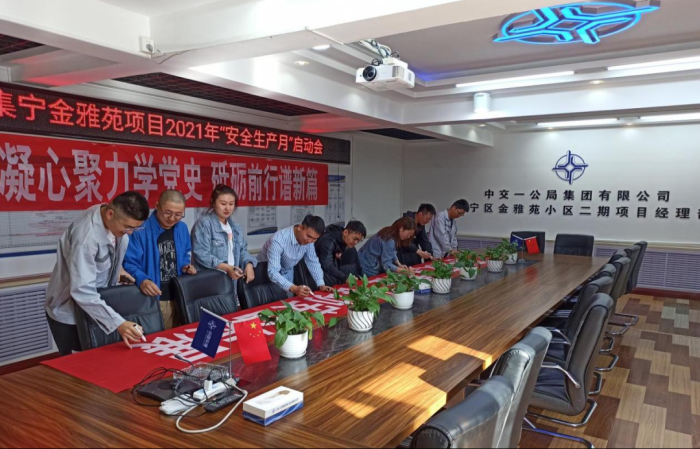 6月1日聊城项目召开了“安全生产月”启动会。会议围绕2021年安全月主题“落实安全责任,推动安全发展”对安全月活动方案进行部署,推动一岗双责,项目所有岗位人员共同参与,切实保障生产安全。最后项目负责人带头在安全月主题横幅上签字承诺。(陈振涛)