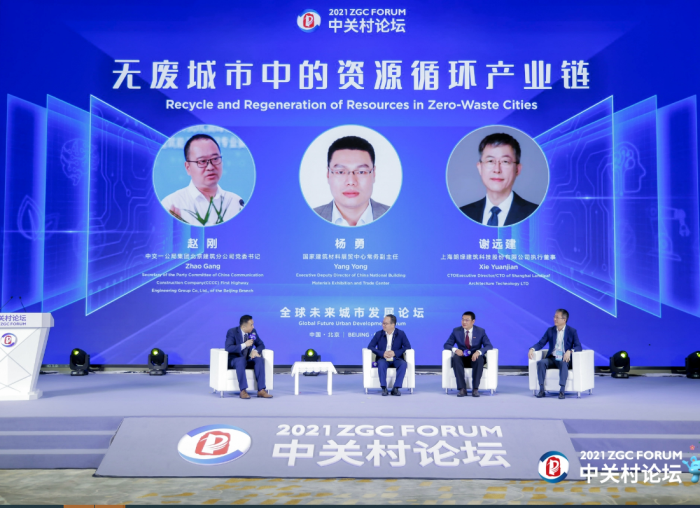 报道提到,在近日开幕的“2021中关村论坛”全球未来城市发展分论坛上,中交一公局集团建筑工程有限公司党委书记、执行董事赵刚在“无废城市中的资源循环产业链”主题对话环节中就“发展城市生产领域的经济循环”主题介绍了“中交”贡献与经验,表示在“无废城市”建设中将践行央企担当,持续贡献“中交”力量。
