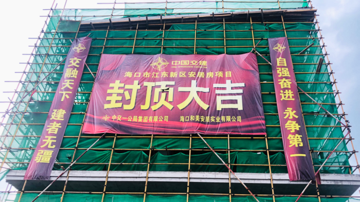 海口江东新区安居房项目首栋建筑单体顺利封顶!
