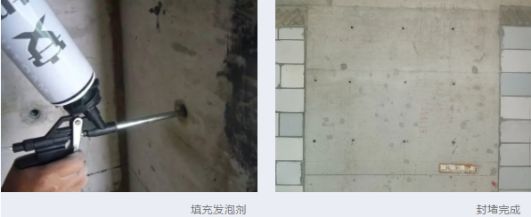 在施工过程中,项目采用木模板对剪力墙进行加固,穿墙螺杆加固后会对剪力墙体留下穿墙孔洞,存在较大渗漏隐患。在进行孔洞封堵时,若使用常规抗裂砂浆封堵法,易造成不密实、后期渗漏的风险。所以,怎样用高效、便捷的孔洞封堵方式,同时又保证孔洞封堵的质量,成为了让项目头疼的难题。