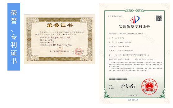 除此之外,为解决岩石地基地下压力水问题,通过发明地下裂痕水处理装置以保证基础混凝土施工不受地下压力水的影响,降低地下室的渗漏风险,并已取得局合理化建议二等奖及实用新型专利授权。