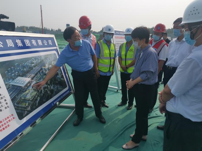 李长萍一行深入聊城西站配套基础设施建设项目察看了项目工作进展,听取项目施工进度、质量、安全、防疫情况汇报。