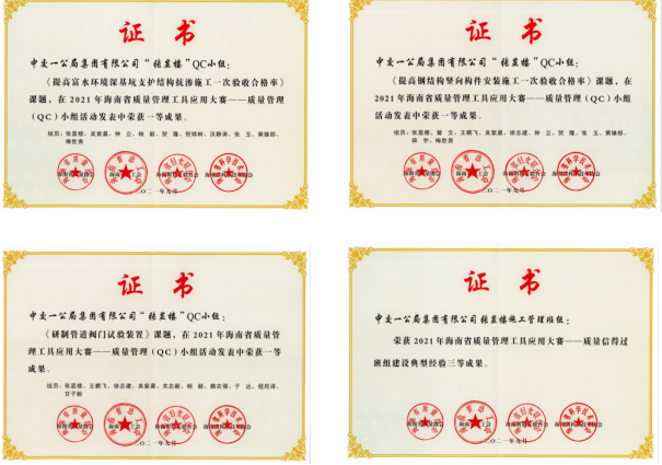 近日,海南省中医院项目“张显楼QC小组”,在2021年海南省质量管理工具应用大赛中得到行业专家和各界同仁的肯定,收获颇丰。其中,《提高富水环境深基坑支护结构抗渗施工一次验收合格率》、《提高钢结构竖向构件安装施工一次验收合格率》、《研制管道阀门试验装置》均荣获一等成果,《张显楼施工管理班组》荣获三等成果。