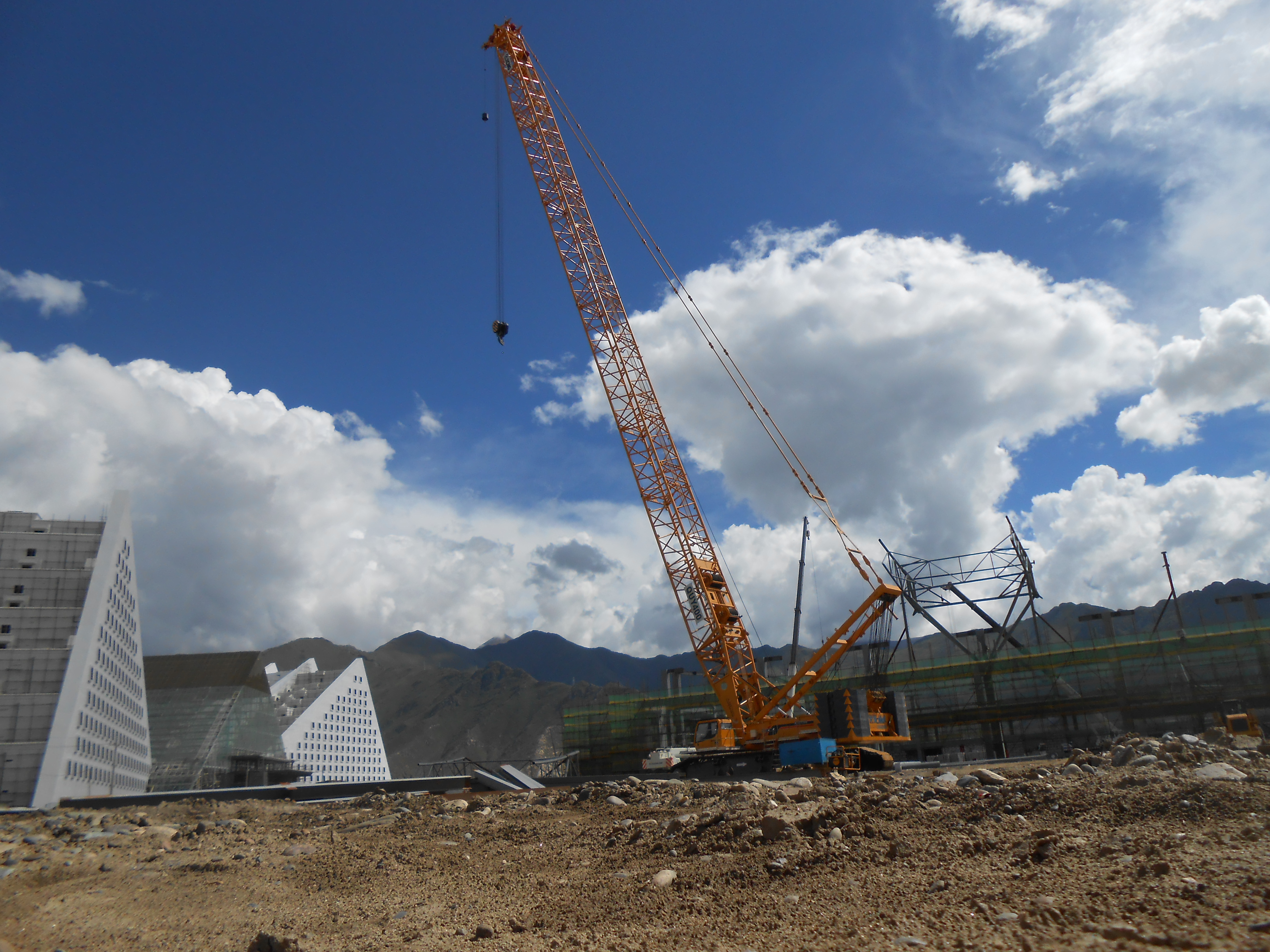 为满足西藏会展中心大拼现场上部结构吊装吨位的要求,8月29日,项目部租赁的400吨履带吊入场就位,只待一声哨响。