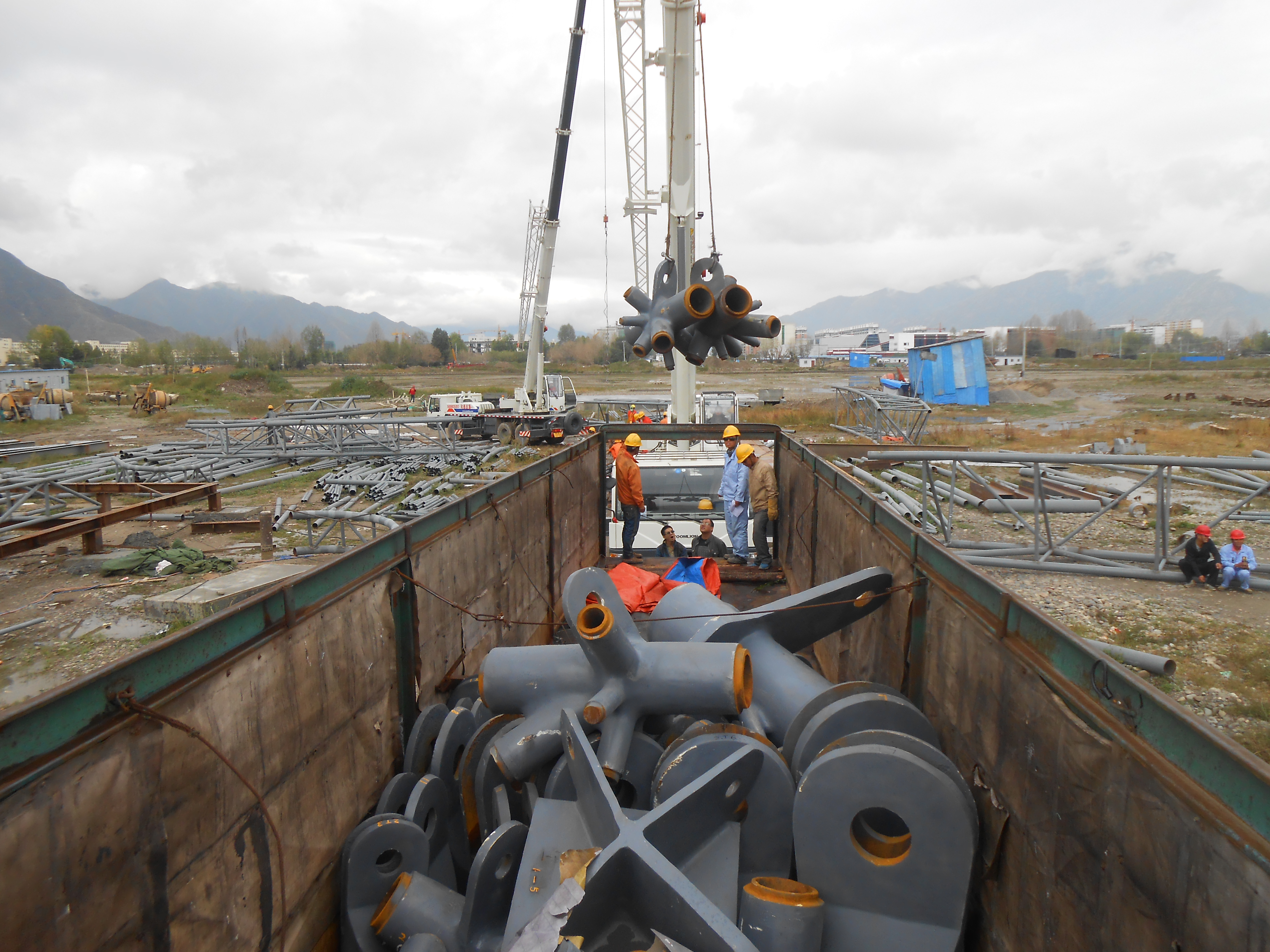 8月30日,最后一车装载60件总计26.5吨铸钢件进场,至此西藏会展中心上部结构管桁架连接节点全部到场。