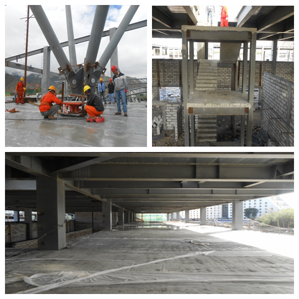 9月6日,西藏会展中心1#馆2#馆二层平台、三层平台以及楼梯混凝土全部浇筑完毕。