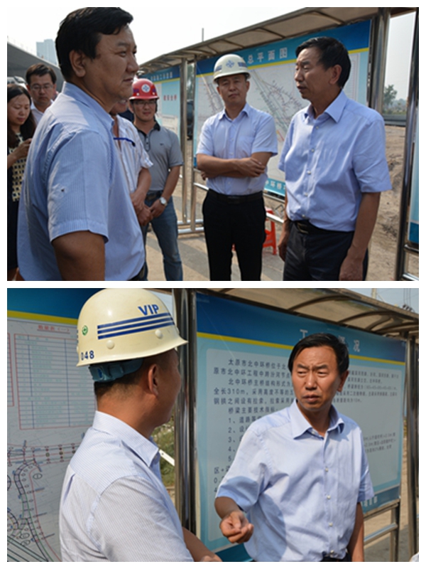 9月13日,太原市长耿彦波一行在公司总经理刘志、项目经理郝海龙的陪同下,视察了北中环钢桥施工项目。