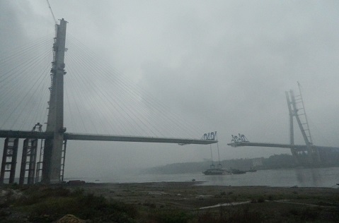 永川长江大桥的桥位安装分别从永川侧和江津侧同时向合拢位置进行,截至12月25日,在全桥41个制作梁段安装中,永川侧和江津侧均已完成19个梁段。吊装位置已进入主航道,为确保航运通行安全,重庆海事局对吊装时间进行了严格规定,致使工作难度增大。项目部制订切实可行的施工计划,合理安排,做好各项应急准备确保大桥的顺利合龙。