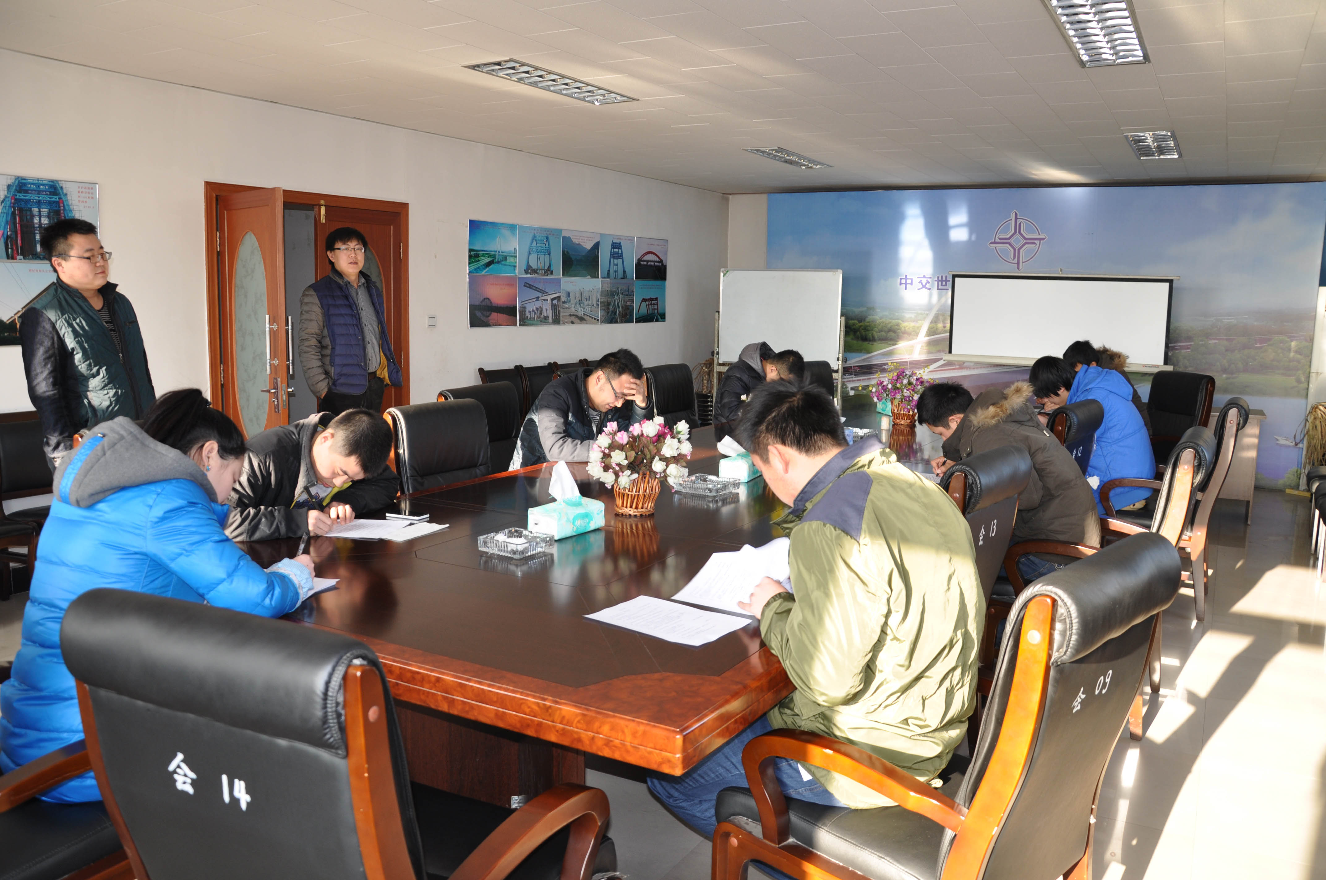 为提高新员工业务水平,2月2日-8日,高碑店分厂每天利用一段时间对青年技术人员进行培训。培训由分厂技术部部长康继平授课,各部门2014年入职的新员工参加了培训。 培训的内容主要是铁路钢桥制造规范及常用钢标准规范等,康部长讲解了其中有关钢结构下料、焊接、质检方面的基本知识,列举了一些钢桥常见的质量问题及注意事项。培训结束后进行了考试。 培训期间,各学员积极参与,踊跃发言,探讨自己工作中遇到的有关技术问题。考试过程中,大家遵守纪律,认真答题,实事求是的检验自己的学习成果。