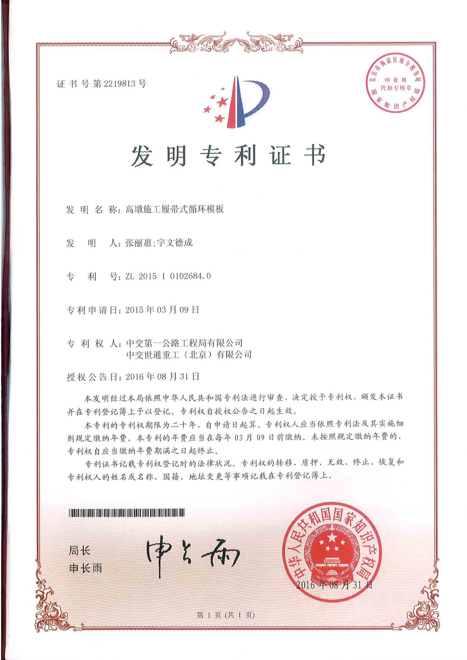 日前,由公司自主研发的《高墩施工履带式循环模板》发明专利申请成功(专利号:ZL 2015 1 0102684.0)。 本发明专利属于高墩模板结构技术领域,在施工中省略了模板的拆装、倒换过程,具有操作简单、方便、效率高、提高安全因素等特点。且在模板整体提升过程中,模板与混凝土表面没有相对滑动,能保证混凝土表面光洁、美观。 发明专利的申请成功,促进了公司自主研发能力进一步的提高,并在原有基础上进行技术创新升级和形成企业自主知识产权,推动生产技术进步,提高市场竞争力。 技术质量部 白虹