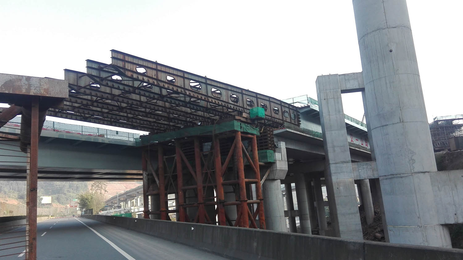 12月4日,雅康高速C5标对岩互通对岩大桥左幅65米跨度钢箱梁正式开始顶推施工。 当日,在工作人员的紧密配合下,雅康高速主线左幅钢箱梁缓缓向前移动,顶推施工正式启动。相对于右幅钢箱梁,雅康高速主线左幅钢箱梁预拱度有所增大,并且在顶推过程中横跨雅西高速的距离也有所增加,因此左幅钢箱梁顶推施工较右幅相比难度增大。施工人员在右幅顶推经验的基础上,进一步完善了施工技术,如期顺利顶推。 此次雅安高速主线左幅钢箱梁的顺利顶推标志着雅安项目又向前迈出了一大步。