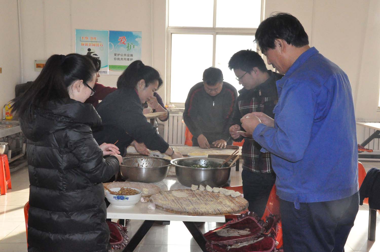 在元旦来临之际,为了丰富职工的生活,增进职工感情,高碑店分公司特举办此次“庆元旦、包饺子”团圆活动。 元旦当天,上午十点拉开了包饺子序幕,党支部书记刘卫国发挥带头作用,首先加入“战斗”,果然榜样是有感染力的,大家围在餐桌旁有说有笑地开始劳动。有人和面、有人擀皮儿、有人包饺子,分工明确又配合默契……大家忙的不亦乐乎。不一会儿,一盘盘形式多样、样貌精美的饺子便摆上方盘,大家纷纷与自己的劳动成果合影留念,欢声笑语衬托出浓浓的节日气氛,虽然包出来的饺子形状各异,但个个都包尽了“温暖”和“祝福”。 中午,热气腾腾的饺子就上桌了,员工们嘴里吃着热腾腾的饺子,讨论着各自家乡过节的习俗,整个职工食堂暖意融融。