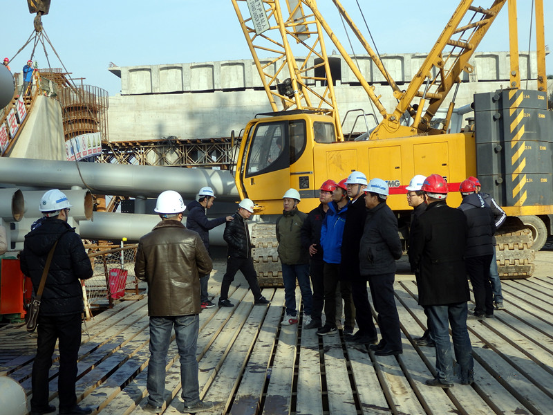 1月24日上午,黄石市交通运输局副局长童金波、交通运输局总工程师潘拥军等领导在大冶湖项目经理王加元的陪同下,专程到大冶湖特大桥钢结构工程建设工地慰问节前坚守一线的施工人员,为他们送去市领导的关怀和问候,并要求施工单位要克服困难,加快建设进度,按时保质完成建设任务。