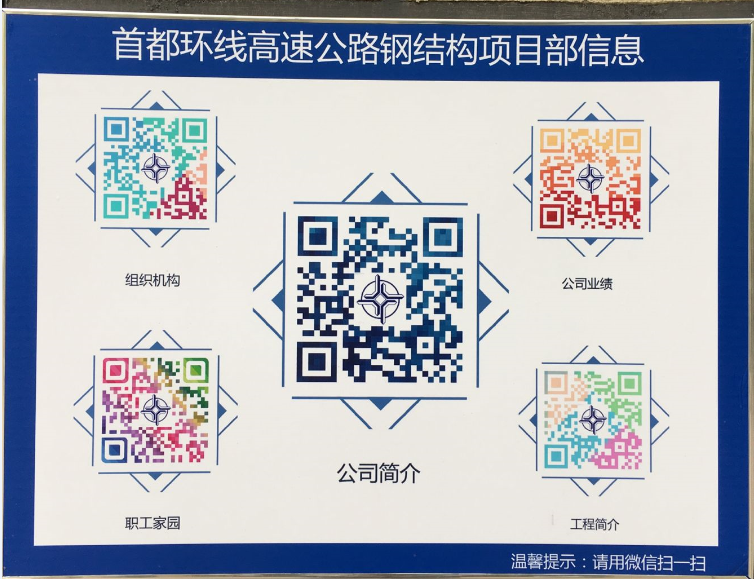 首都环线采育高架桥钢结构项目自进场以来,高度重视标准化文明施工建设,此次二维码各部分内容信息,也会随着企业的发展及项目的施工进度进行实时更新。二维码的运用是新形势下的传播媒介,不但增加了公司在网络上的信息宣传,让企业文化宣传更快速的传播,还让项目借助二维码向大众提供丰富多彩的项目内容。