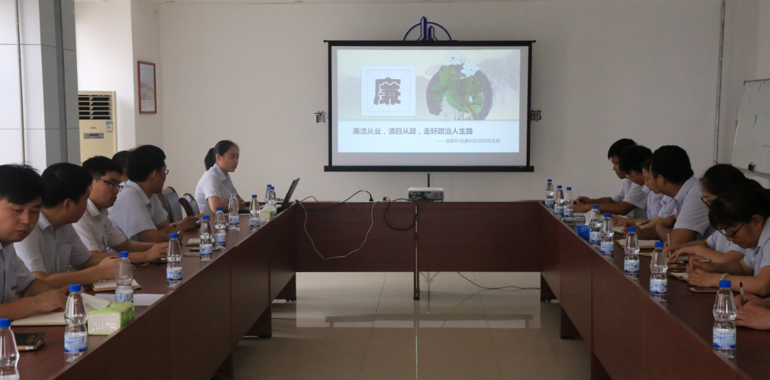 根据公司纪委要求,7月为党风廉政建设宣教月。针对项目廉政建设,7月24日,首都环线工程通州-大兴段钢结构项目党支部副书记赵坤为项目职工上了一堂精彩的廉政党课,党课主题为“廉洁从业,清白从政,走好政治人生路”,项目经理李东生、项目总工程师徐贺及部分党员参加,部分员工列席参加。