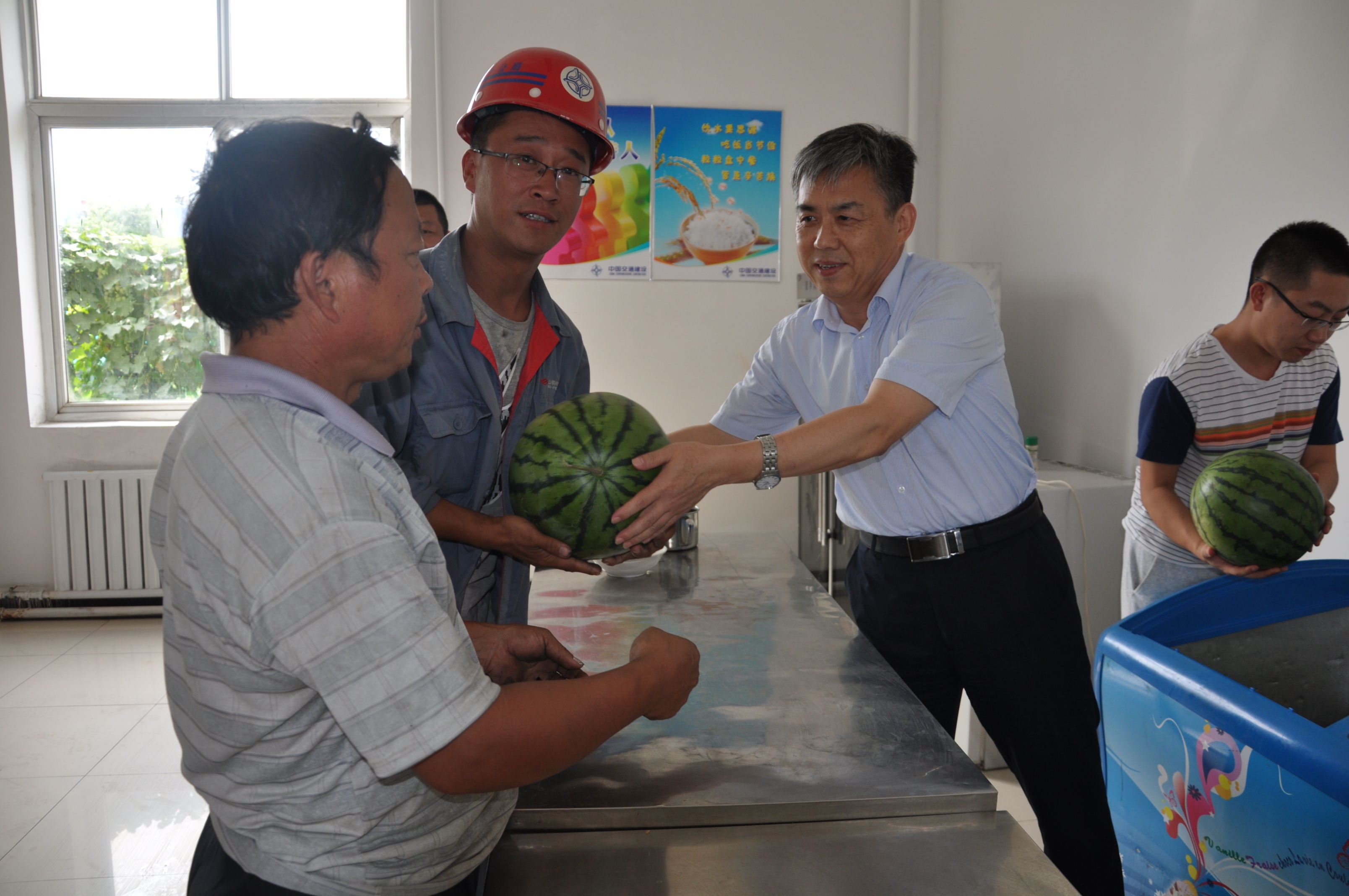 几个冰镇西瓜虽然不可能抵挡住酷暑的炎热,但是却体现了公司对农民工兄弟关爱,更加鼓舞了一线施工人员的干劲,使所有施工队伍深刻体会到世通大家庭的温暖。
