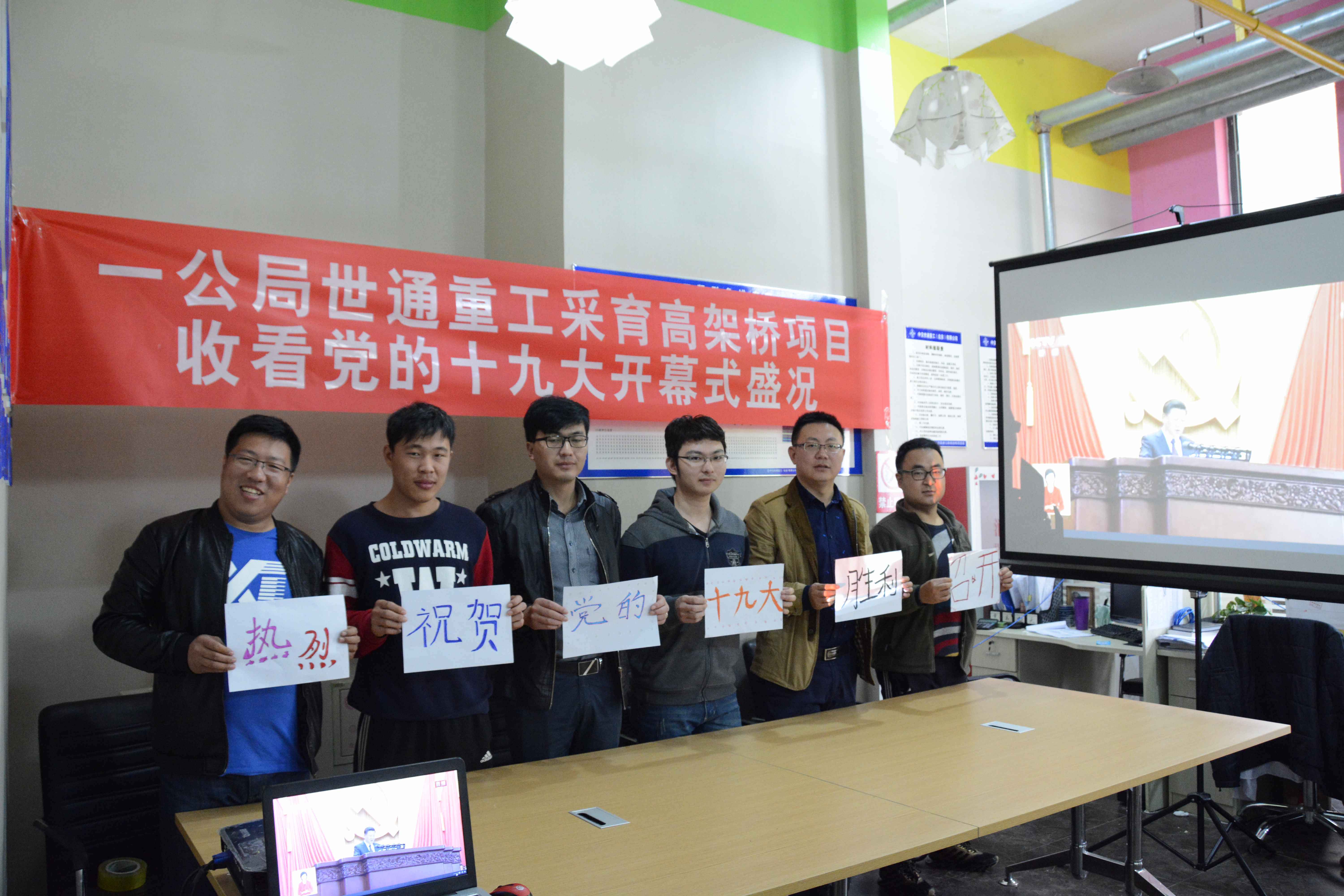 为了迎接党的十九大,传扬积极向上的正能量,10月18日,首都环线采育高架桥项目部所有员工在观看十九大开幕式结束后举行“合照快闪”活动,项目员工别出心裁,用自己的手工艺术拼成祝贺十九大的文字并快闪记录了下来,充分的把项目员工自豪、团结、振奋的精神,用快闪的活动表现了出来,项目经理崔鑫鼓励大家“不忘初心、继续前行”,坚守自己的岗位,干出精品工程,为十九大献礼。
