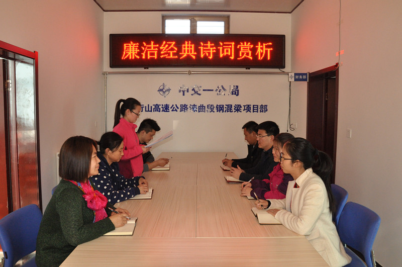 “予独爱莲之出淤泥而不染,濯清涟而不妖……”10月31日,太行山项目的会议室里传来阵阵诗词诵读声。本次廉洁经典诗词赏析会,聚集了项目全体员工,大家通过品诵廉诗,思忆先贤,沐浴清风,激扬队伍正气。