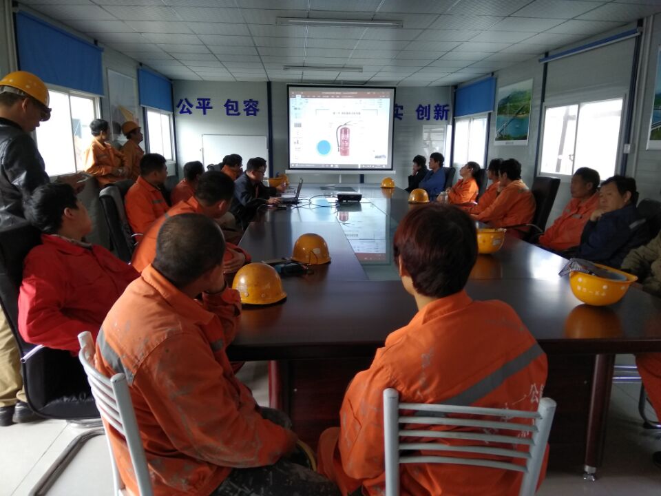 项目安全部同事以PPT演示的方式,详细讲解了消防基本知识及“四懂”内容,指出了容易发生火灾的安全隐患,举例说明了常见消防器材、设备、设施的正确使用方法和及逃生方式等。使全体施工人员対消防知识有了更深的理解和认识。