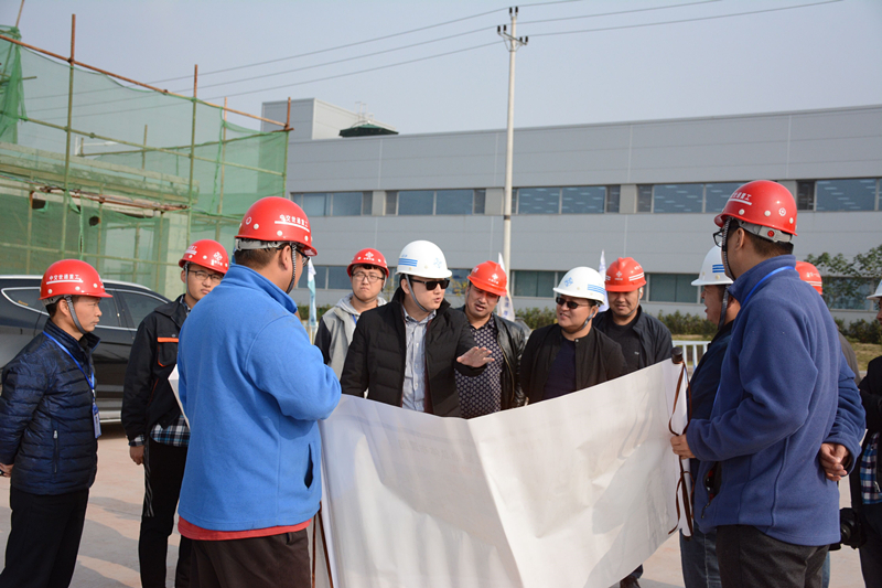 刘建军书记一行来到施工现场,听取了王琪对工程建设情况及厂内布局情况的介绍,详细了解工程进度、厂内流水线布局及厂房建成投入使用后各类应急措施预案,并与项目员工亲切交谈。刘建军要求,在后期工作中要走出去,学习优秀工程项目,创新思路,坚持全面思考问题,对工程建设要统筹兼顾,做到未雨绸缪。