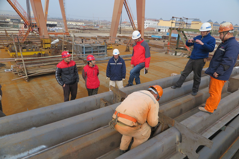 2018年1月18日上午,福州长门特大桥业主代表、技术顾问、三检方和监理莅临长门特大桥项目检查工作。本次主要针对钢箱梁的焊缝质量、梁段喷砂除锈、钢箱梁内外表面涂层厚度、涂层附着力及钢箱梁的预拼装等方面进行检查。