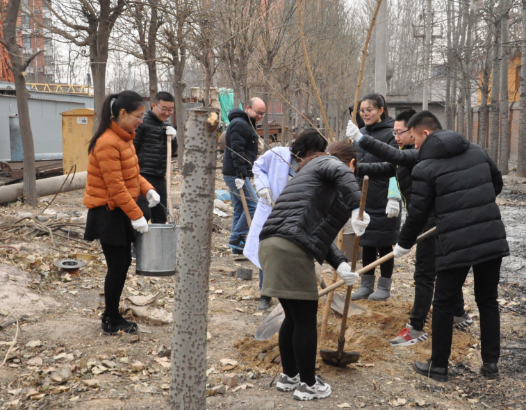 和风吹拂三月暖,草木萌动,大地初融,正是播绿好时节。随着中国第40个植树节的到来,3月12日上午,高碑店加工基地在办公室牵头、副经理沃建伟的带领下,组织基地青年团员开展树苗种植的活动。