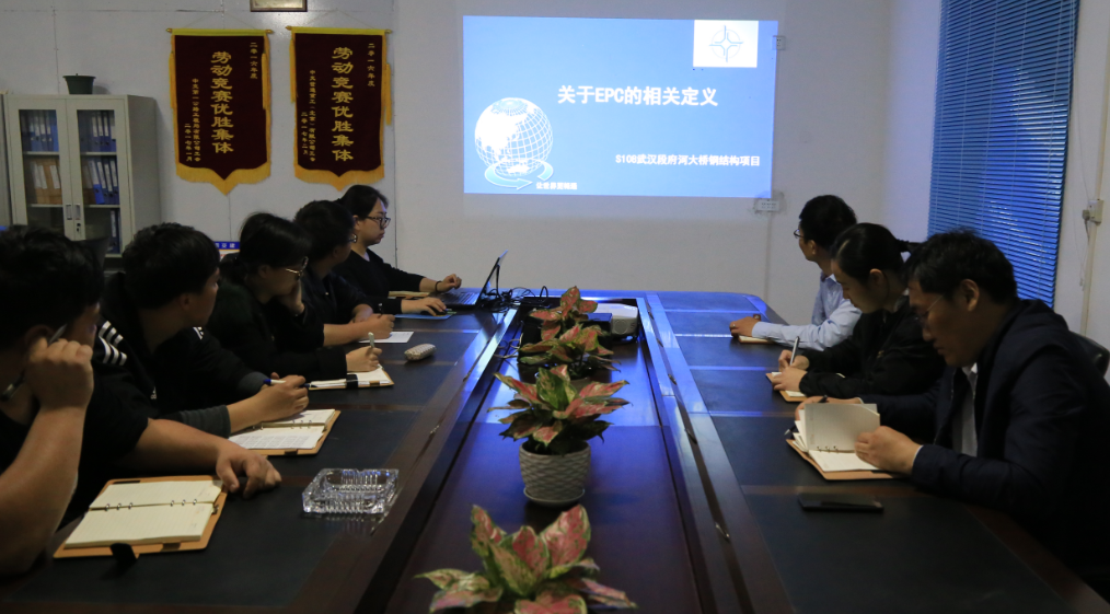 随着国家推广工程总承包制,并提倡和鼓励有条件的设计或施工企业从事与其资质相对应的建设工程总承包业务,3月16日,S108武汉段府河大桥钢结构项目组织开展EPC相关知识培训,本次培训由项目经营部员工主讲,项目副书记赵坤、项目总工程师徐贺、项目总经济师闫鹏及项目员工参加。