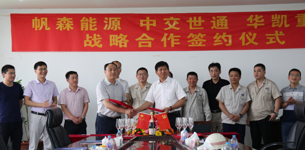 6月6日,世通重工公司党委书记、执行董事韩金锁,党委副书记、纪委书记、工会主席马进军来到江苏省南通市,代表世通重工与南通帆森能源科技有限公司、南通华凯重工有限公司签署战略合作框架协议。