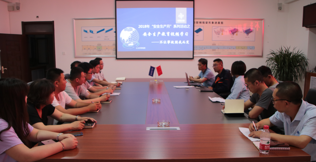 6月17日,呼市金海路钢结构项目结合2018年安全月系列活动安排组织项目部职工集中观看了安全教育警示片。