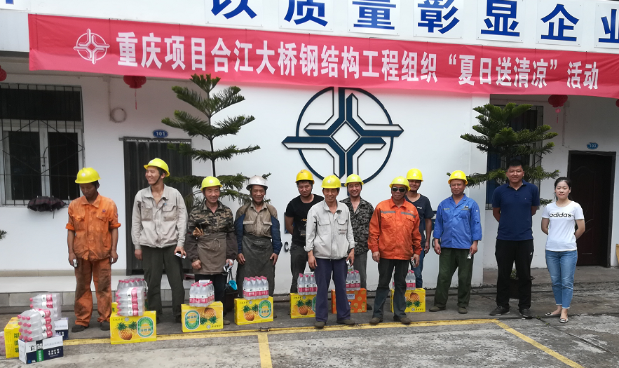 为深入落实中国交建工会联合会下发的《关于做好职工防暑降温、扎实开展“夏送清凉”工作的通知》的相关要求,项目积极响应公司工会的总体部署,有效改善职工夏季生产生活条件,切实维护广大职工的职业安全与健康权益,8月6日,四川合江长江公路大桥钢结构工程项目组织开展 “夏日送清凉”活动,进一步做好职工夏季防暑降温工作。