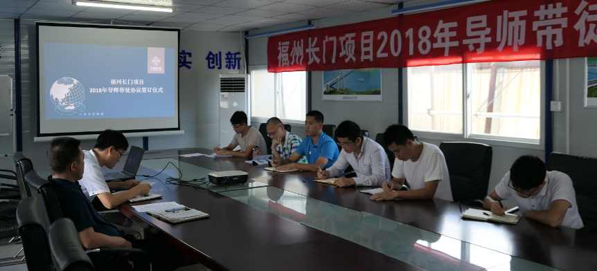 8月22日下午,为积极落实公司“导师带徒”活动精神,提高员工整体素质,加快新员工的人才培养,福州长门特大桥项目特举办“导师带徒”签约仪式。签约仪式由项目常务副经理张卓林主持,项目全体员工参加仪式。