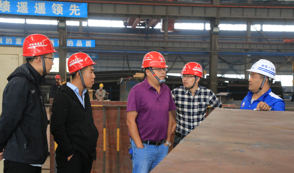 9月19日,在项目经理李东生、副经理张生龙、总经济师闫鹏的陪同下,太原通达桥钢结构项目甲方单位项目经理白俊林莅临钢结构制作基地检查指导。