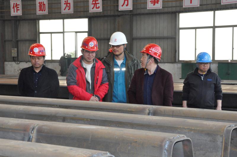 在武汉府河大桥钢箱梁总拼现场,检查组分别对配电箱、临边防护、气体存放、警示标志设置、特种设备等重点部分进行了认真检查。检查组随后又对钢板存放区、板单元下料区、板单元焊接区等区域进行了细致的检查。